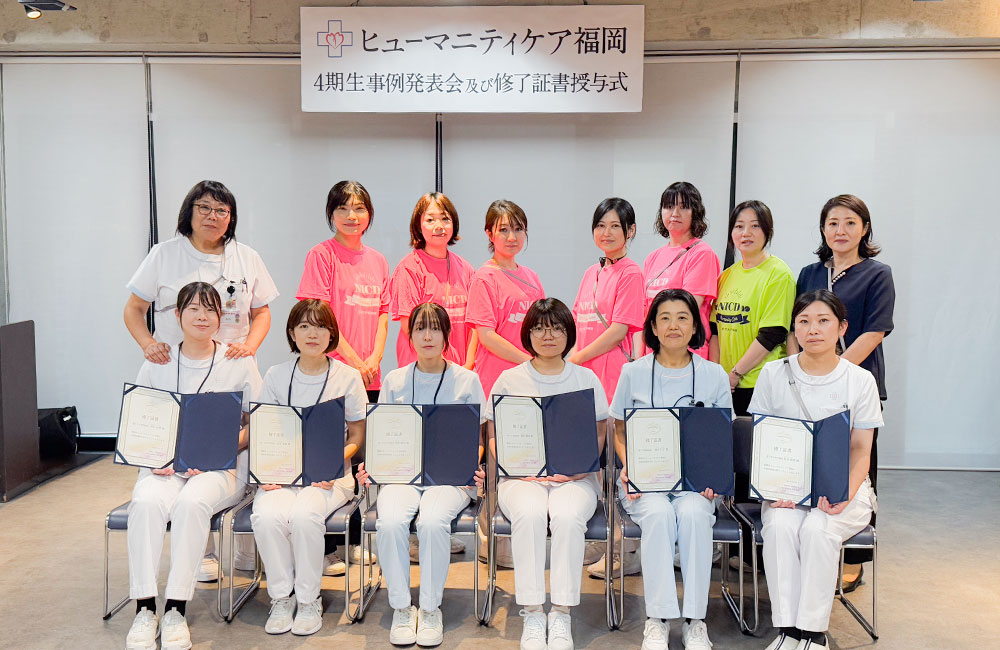 先日、ヒューマニティケア福岡4期生6名の事例発表会と修了証書授与式を開催しました。