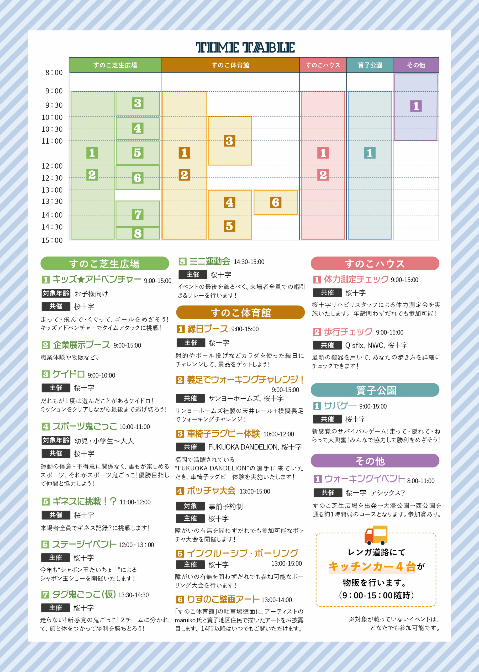 キッチンカーも登場しますので、カラダを動かした後に美味しい食事も一緒に楽しむことができます。