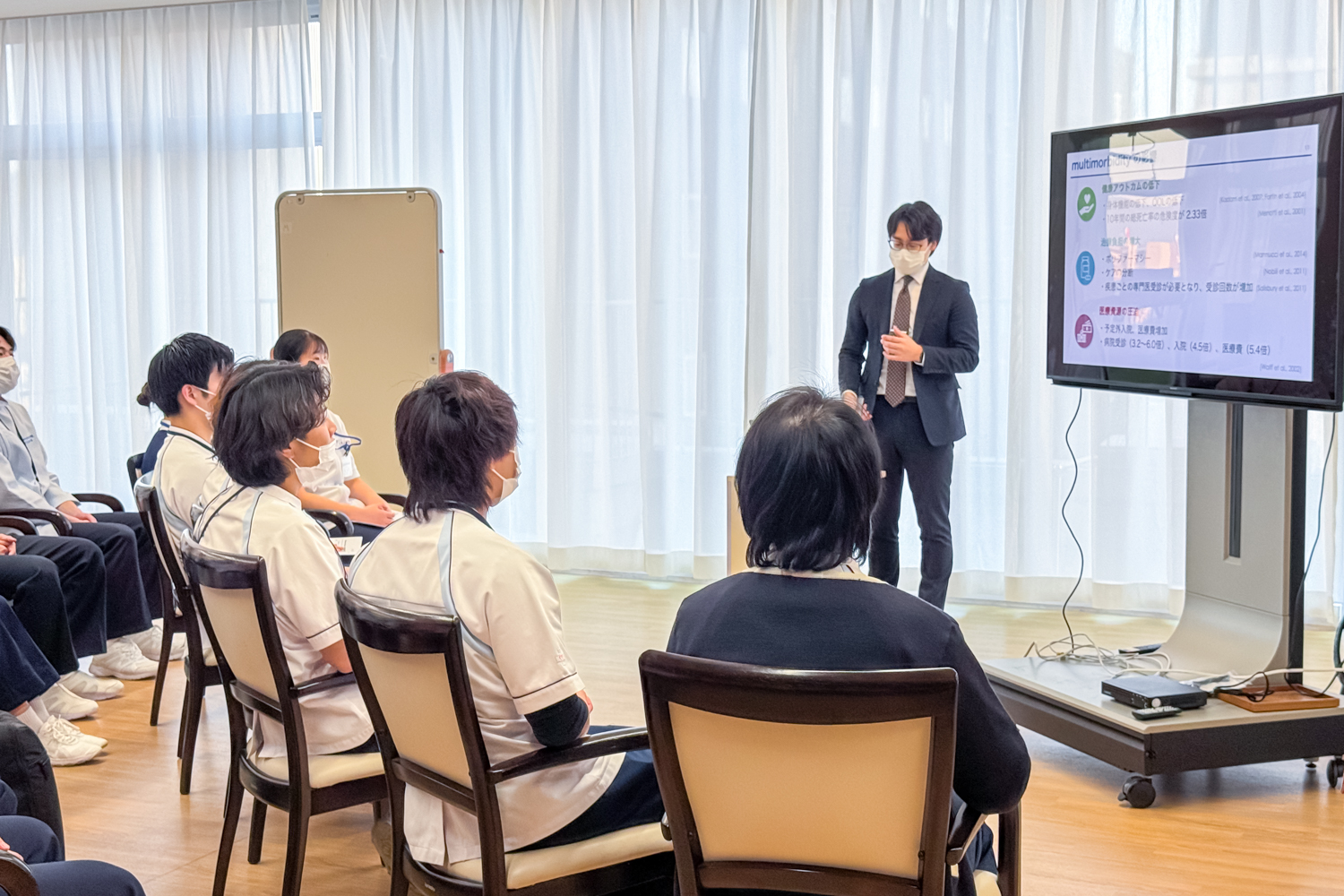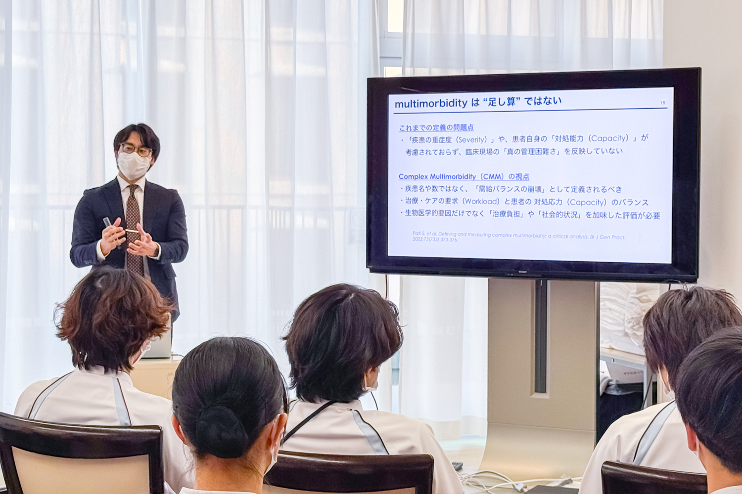 今回の勉強会では、Multimorbidity(多疾患併存)の概念や各疾患が相互に及ぼす影響についての基礎知識に加え、機能回復を目指すうえでの包括的評価の重要性について講義いただきました。