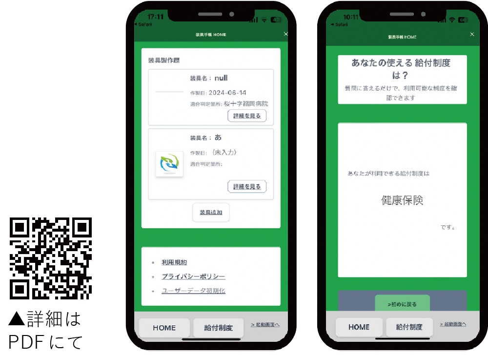 福岡桜十字では、装具手帳がさらに便利に進化した「装具手帳アプリ」を導入しています。アプリケーションを通して、装具の情報管理をアップデートし、常に正しく装具が使えるようサポートします。